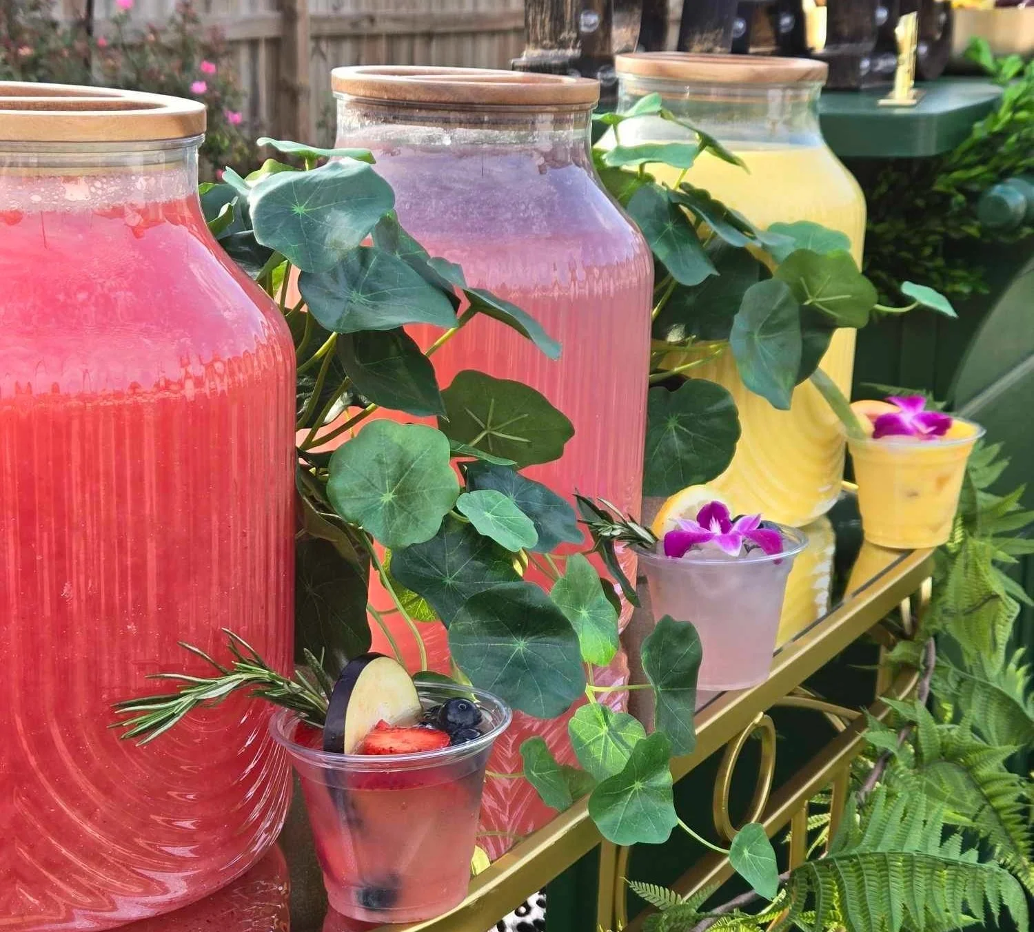 Our Frangrias! Beverage Packages include: 3 batched signature beverages, either with alcohol (cocktails) or without alcohol (mocktails), Prepared Fresh Garnish, & Cups